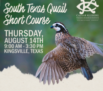The South Texas Quail Short Course has reached full capacity and is now sold out. If you would like to be added to the waiting list should a spot open up, please email gina.cavazos@tamuk.edu.